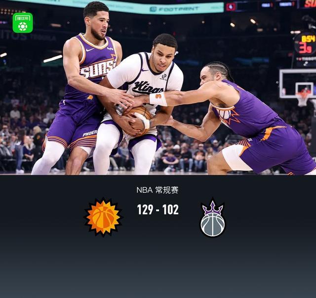 菲尼克斯太阳德文-布克33分2板5助,狄龙-布鲁克斯18分2板1助;萨克拉门托国王基根-穆雷23分10板2助,威斯布鲁克17分9板6助。